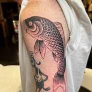 Meet Sam, a skilled tattoo artist from Flagstaff, AZ, with 4 years of experience. Specializing in American and European traditional tattoos as well as soft black work, Sam brings a mix of boldness and subtlety to every piece. When he’s not tattooing, you can find him outside skateboarding, snowboarding, mountain biking, or climbing. He also loves spending time with his family and, of course, petting kittens. If you’re looking for a tattoo that blends artistry with a personal touch, Sam’s your guy. Stop by or book an appointment to get started!